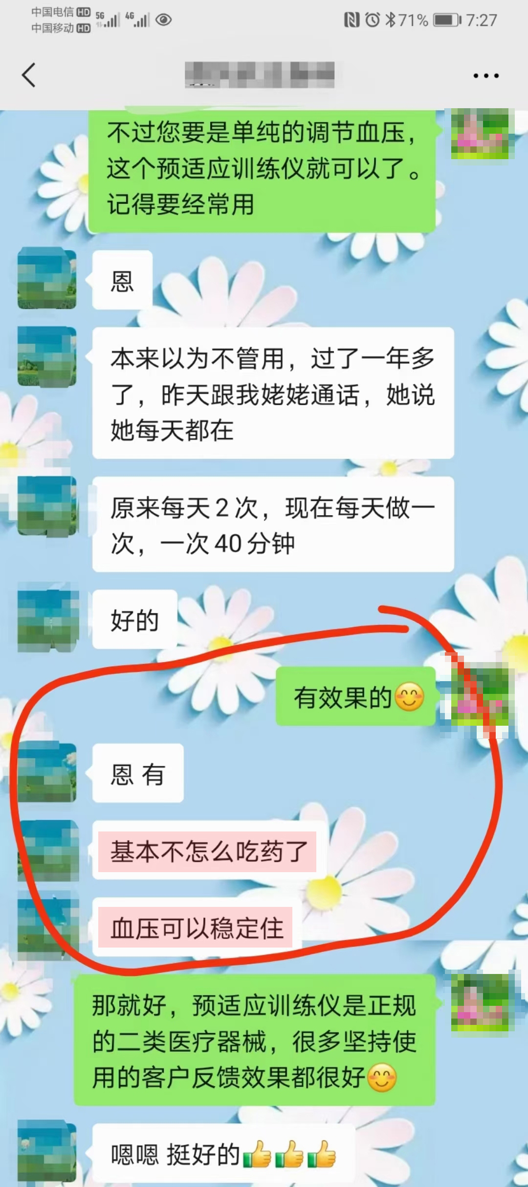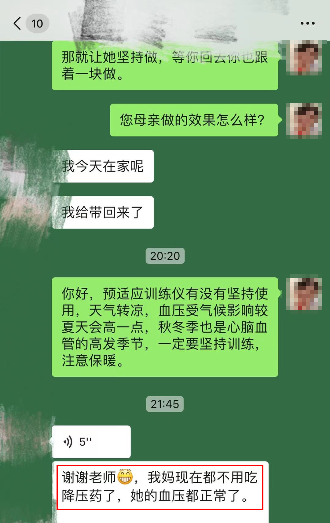 血壓恢復(fù)正常,頭暈的感覺消失了”